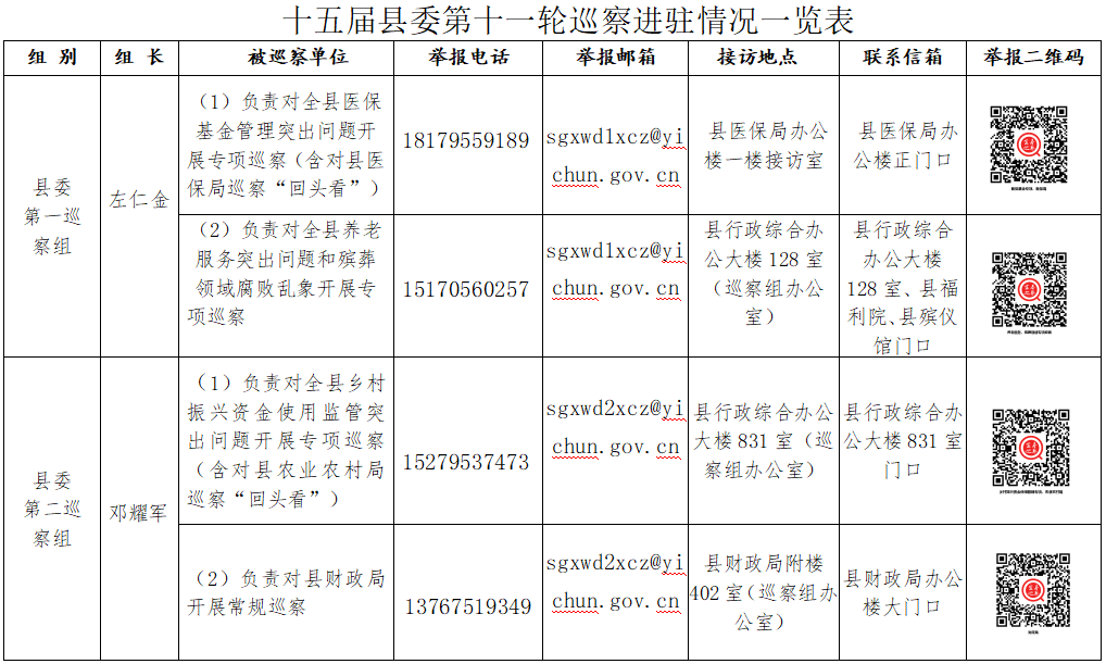 巡察期间,县委各巡察组设立接访地点、举报电话、举报邮箱、联系信箱和举报二维码等。欢迎广大党员、干部、群众实事求是向巡察组反映问题。巡察组受理信访时间截止到2025年5月28日。(其中省市县三级联动专项巡察组受理信访时间截止到2025年5月9日)。